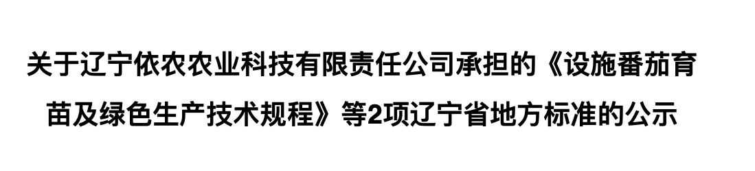 根據(jù)遼寧省地方標(biāo)準(zhǔn)管理辦法(遼農(nóng)監(jiān)[2017]34號)要求,現(xiàn)將遼寧依農(nóng)農(nóng)業(yè)科技有限責(zé)任公司和遼寧省農(nóng)業(yè)科學(xué)院共同承擔(dān)的《設(shè)施黃瓜育苗及綠色生產(chǎn)技術(shù)規(guī)程》征求意見稿和《設(shè)施番茄育苗及綠色生產(chǎn)技術(shù)規(guī)程》等2項遼寧省地方標(biāo)準(zhǔn)進行公示,并面向社會征求意見.